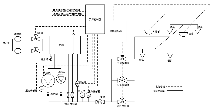 7進(jìn)水電磁閥,8主閥,9回水閥,10穩(wěn)壓泵總成,11DN80球閥,